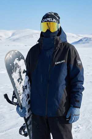 整件夾克的接縫處均採用壓膠。接縫是任何服裝的最薄弱點。 CapelinCrew 採用特殊膠帶確保水不會滲入,讓您放心地在斜坡上騎行